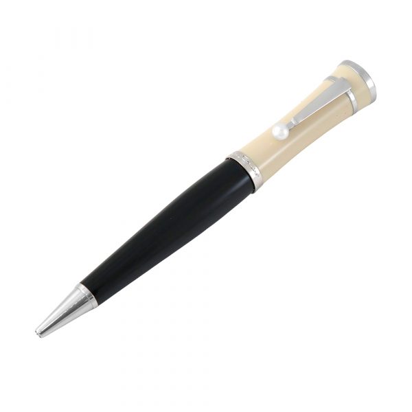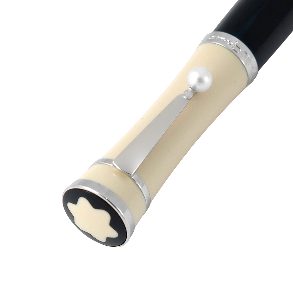 El bolígrafo Montblanc Greta Garbo forma parte de la línea «Muses Edition», una colección hecha como homenaje a mujeres que m arcaron historia como Greta Garbo, una de las actrices más elegantes y enigmáticas del cine clásico. No es solo un bolígrafo, es una joya estética y cultural. El detalle clip con perla Akopya, es símbolo de elegancia femenina, lo que hace de este bolígrafo una pieza única frente a otras piezas de Montblanc. Su diseño combina resine negra con un capuchón en tono marfil, evocando la estética dorada de Hollywood. El detalle más distintivo es su clip decorado con una perla.