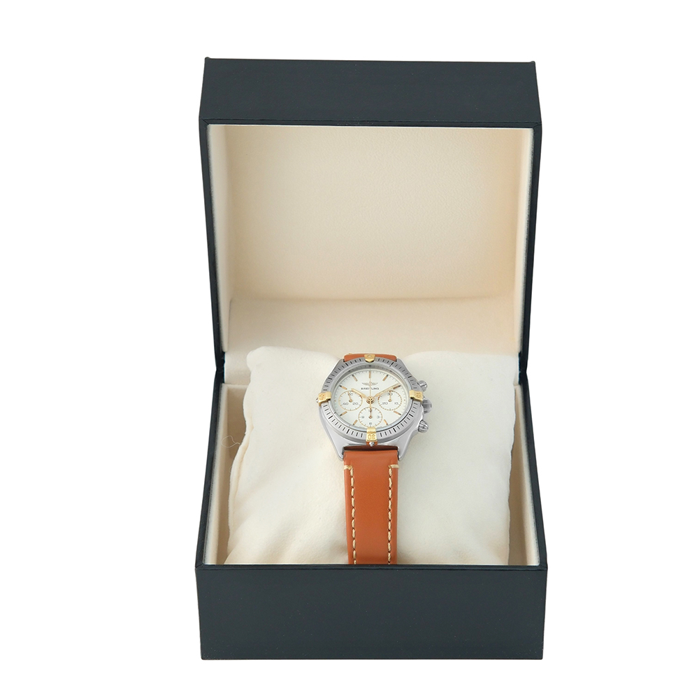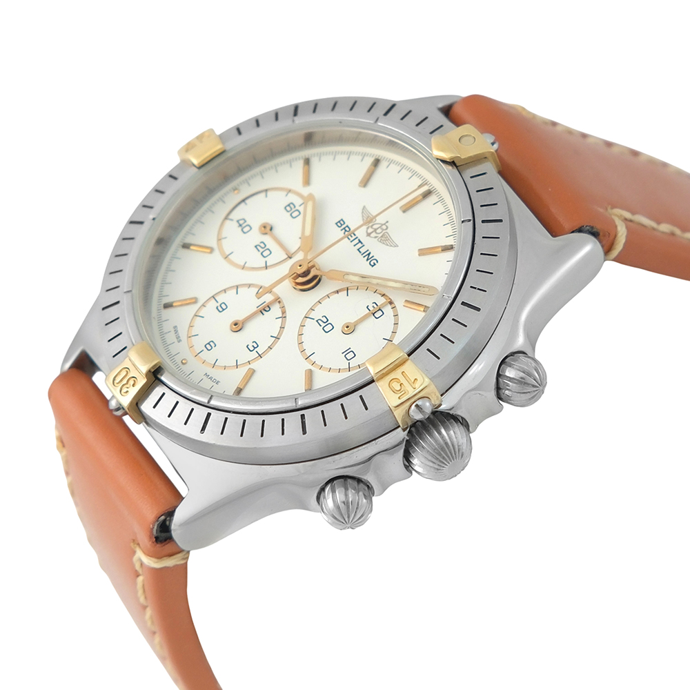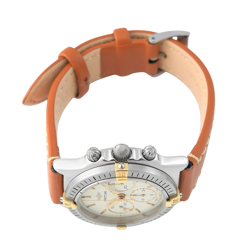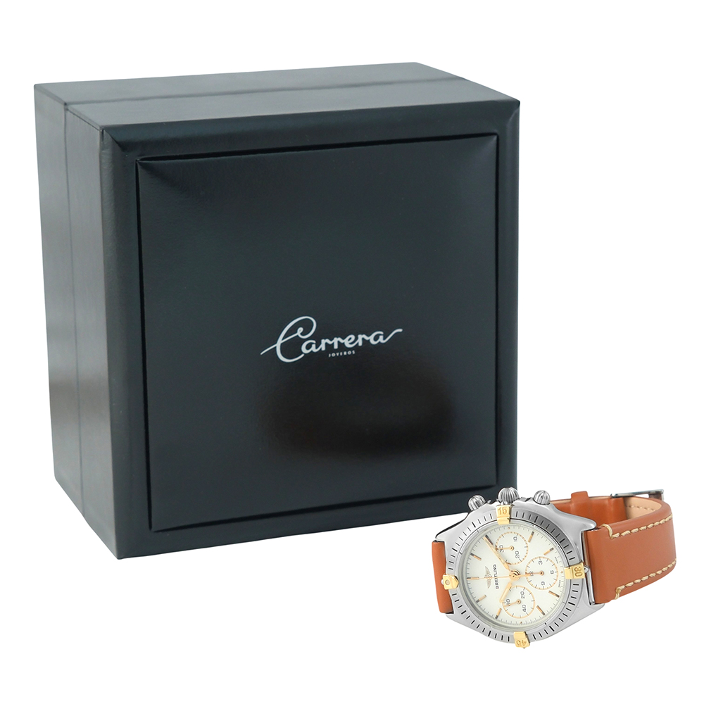 Breitling Callisto 34mm Ref.-B11046.0363 es un reloj de segunda mano, autenticado y verificado, con 2 años de garantía. Se entrega con estuche Carrera, sin documentación. Año aproximado 1990. Excelente estado de conservación. Equipado con movimiento automático, función de cronógrafo, bisel giratorio, esfera crema, cristal de zafiro, correa de piel no original con cierre de hebilla de acero y hermeticidad hasta 30 metros. Envíos gratuitos en península y asegurados en todo el mundo.