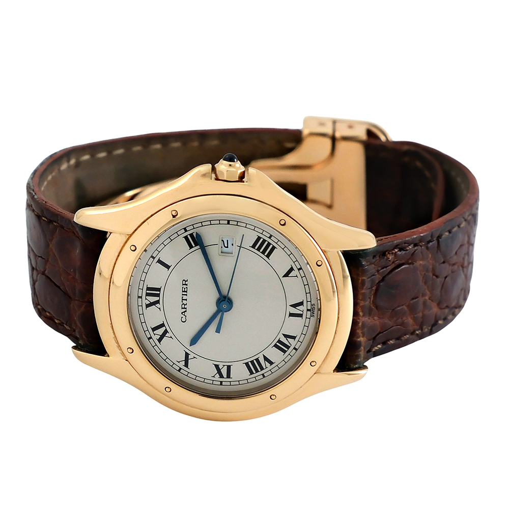 El reloj ha sido cuidadosamente revisado y verificado por nuestros expertos para garantizar su correcto funcionamiento y autenticidad. Su estado de conservación es muy bueno, manteniendo la estética y calidad propias de Cartier. Como reloj de segunda mano puede tener ligeros arañazos a pesar de haber recibido un pulido profesional sutil con el objetivo de conservar su máxima integridad original.
