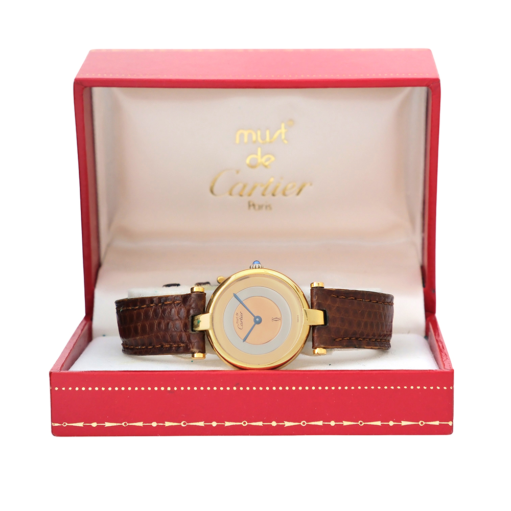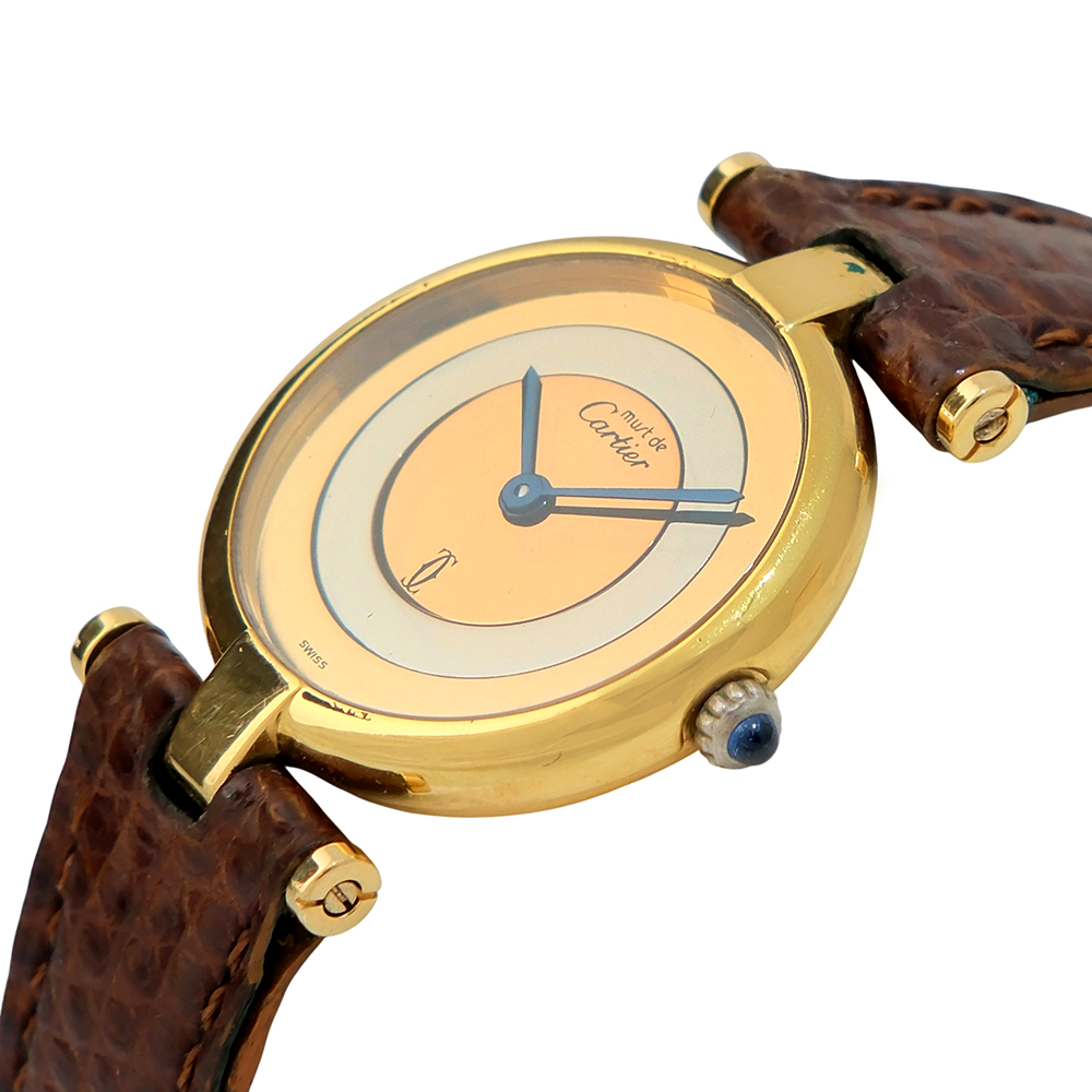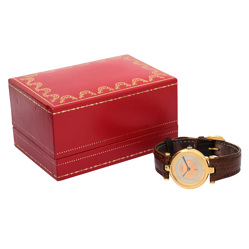 Must Vendome Trinity de Cartier 24mm en un reloj original de segunda mano de los años 90 en buen estado general, revisado por nuestros especialistas para que disfrutes con total tranquilidad y garantía Se entrega con 2 años de garantía, estuche Cartier, sin documentación. Una pieza icónica de elegancia atemporal.