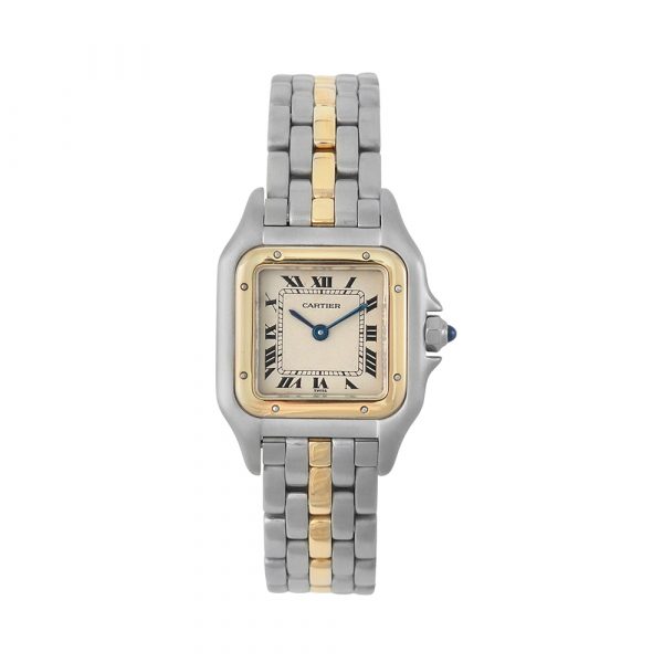 Cartier Panthere lady 22 mm Ref-112000R es un reloj de segunda mano autenticado y verificado y con 2 años de garantía. Se entrega con estuche Cartier, sin documentación. Muy buen estado. Año aproximado 1990. Dotado con movimiento de cuarzo, caja de 22mm de diámetro de acero con bisel de oro, esfera vainilla, números romanos, cristal de zafiro, agujas azuladas, cristal de zafiro, brazalete de acero y oro, cierre desplegable oculto y hermeticidad hasta 30 metros. Nuestros envíos están asegurados en todo el mundo y son gratuitos en península, garantizando una experiencia de compra 100% segura.