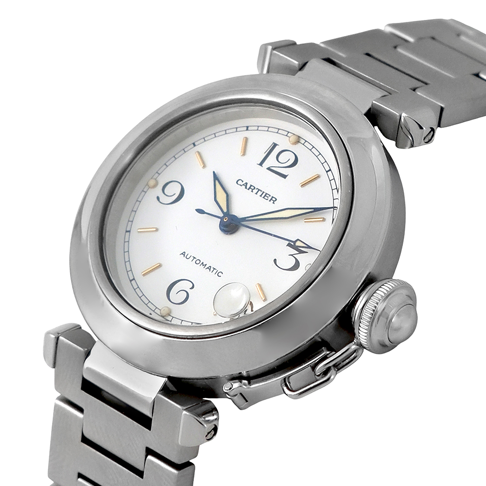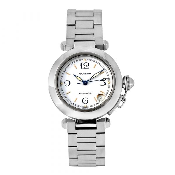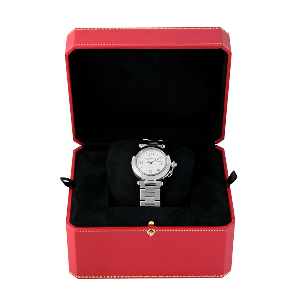 Este Pasha 35mm de Cartier es un reloj de lujo con movimiento automático, de segunda mano año 2005 aprox, en excelente estado general. Reloj original de segunda mano revisado por nuestros expertos con 2 años de garantía, sin documentación, sin estuche. Se adjuntará estuche Cartier de cortesía Carrera, sujeto a disponibilidad de stock. Una pieza icónica de elegancia y personalidad inconfundible.