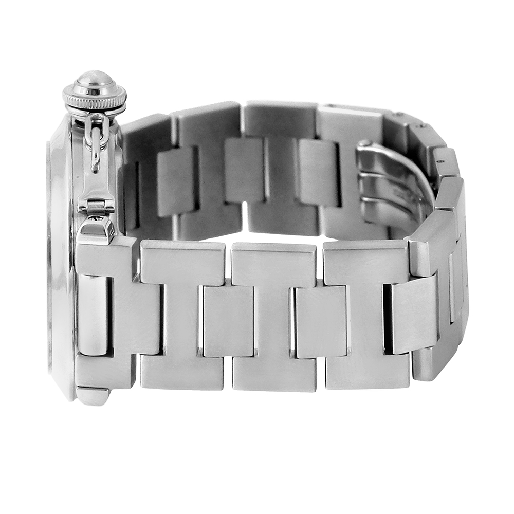 Este Cartier Pasha 35mm es una de las piezas más reconocibles y con mayor carácter de la Maison Cartier. Su diseño inconfundible, con caja redonda, corona protegida por cadena y numerales arábigos, convierten a este modelo en un icono de la relojería contemporánea.