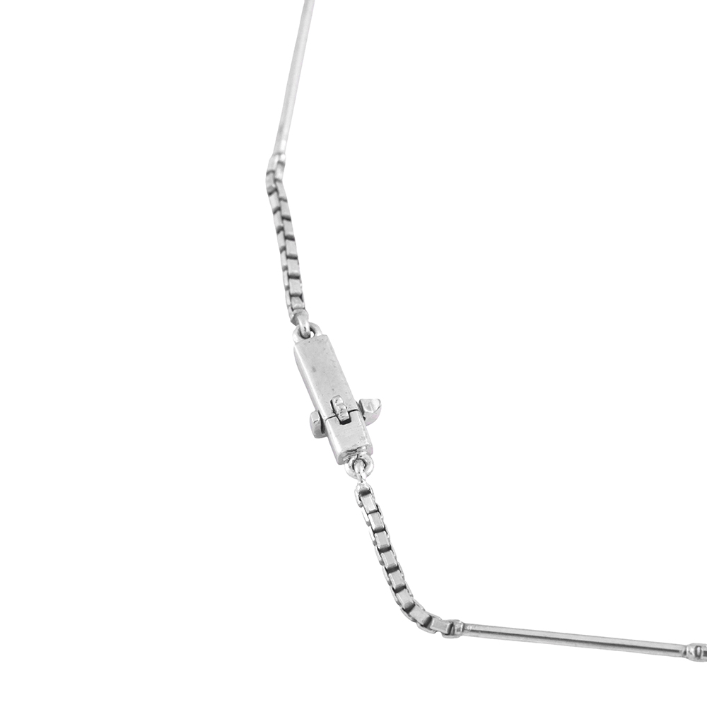 Elegante joya de ocasión artesanal vintage años 60 con este exclusivo collar sobre montura de oro blanco, con engaste de diamantes talla brillante (0.70ct) y rubíes talla marquise (0.75ct).
