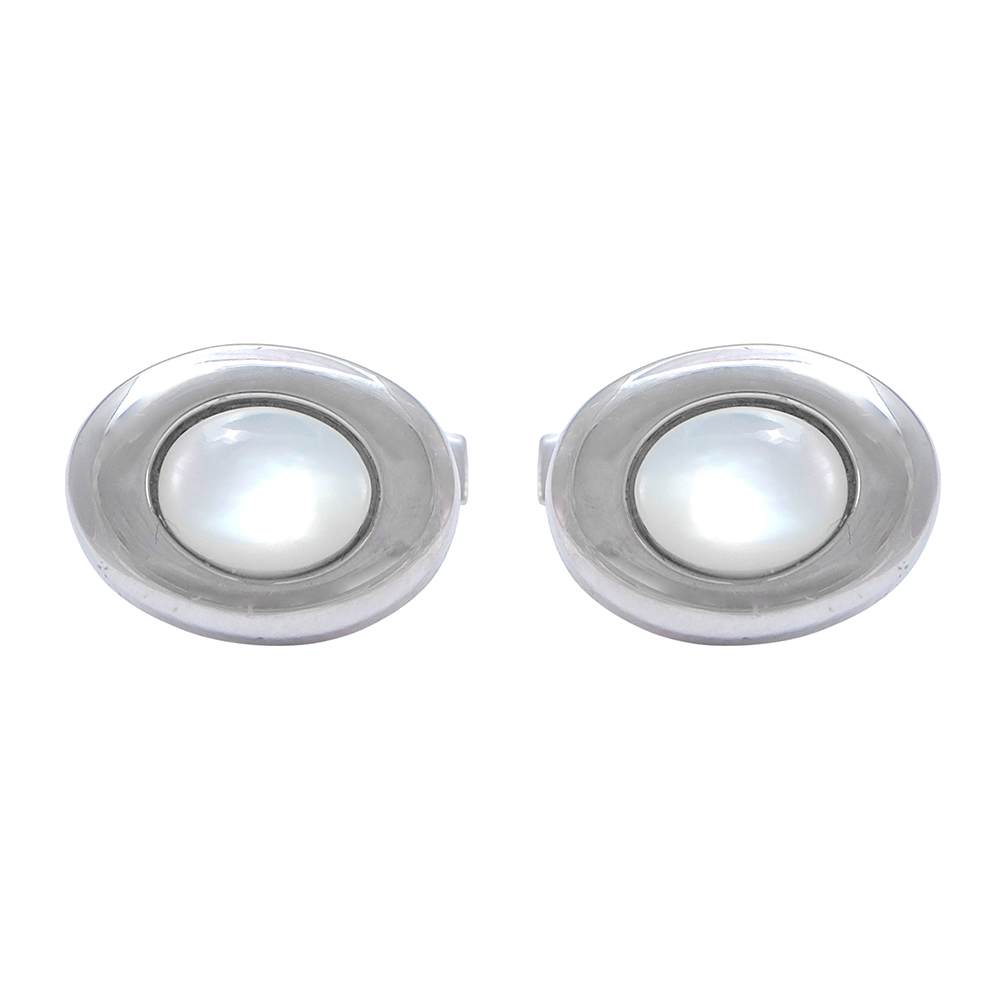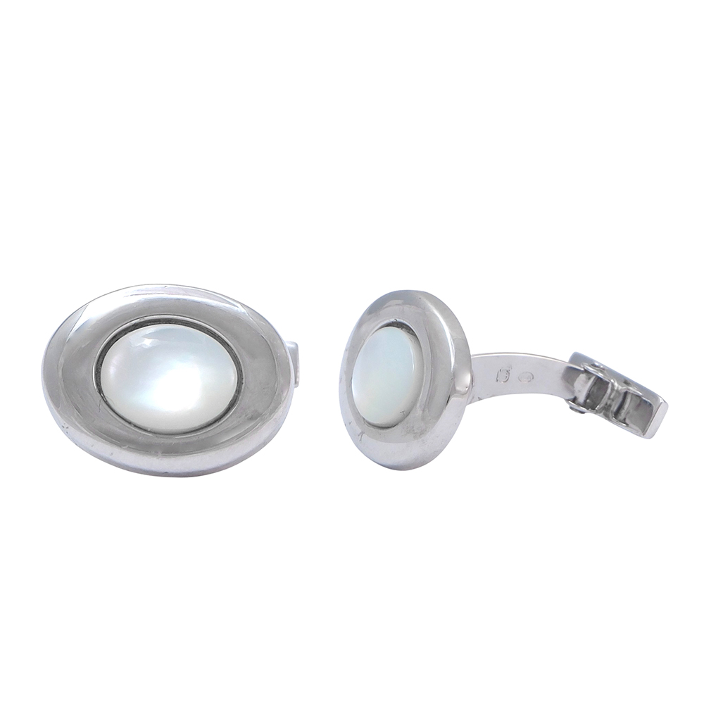 Gemelos de talla oval, revestidos de oro blanco, con piedra central madre perla. Una elegante joya que te acompañará en los momentos más especiales e importantes. Una joya dotada de esa sencilla elegancia tan atractiva que te cautivará. Dale un toque chic a los puños de tus camisas con nuestros maravillosos gemelos de madreperla.