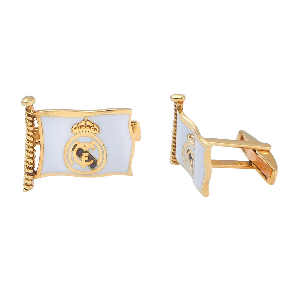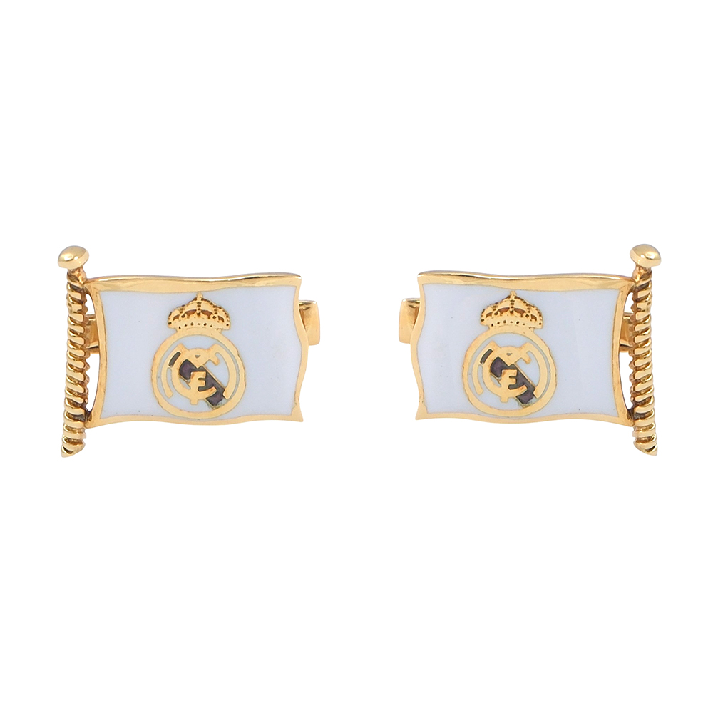 Gemelos de oro amarillo de 18 quilates y esmaltes. Diseñado con el escudo del equipo de fútbol del Real Madrid, revestido de esmaltes de vivos colores. Una acierto seguro para todos los madridistas, que lucirán con orgullo en los puños de sus camisas.