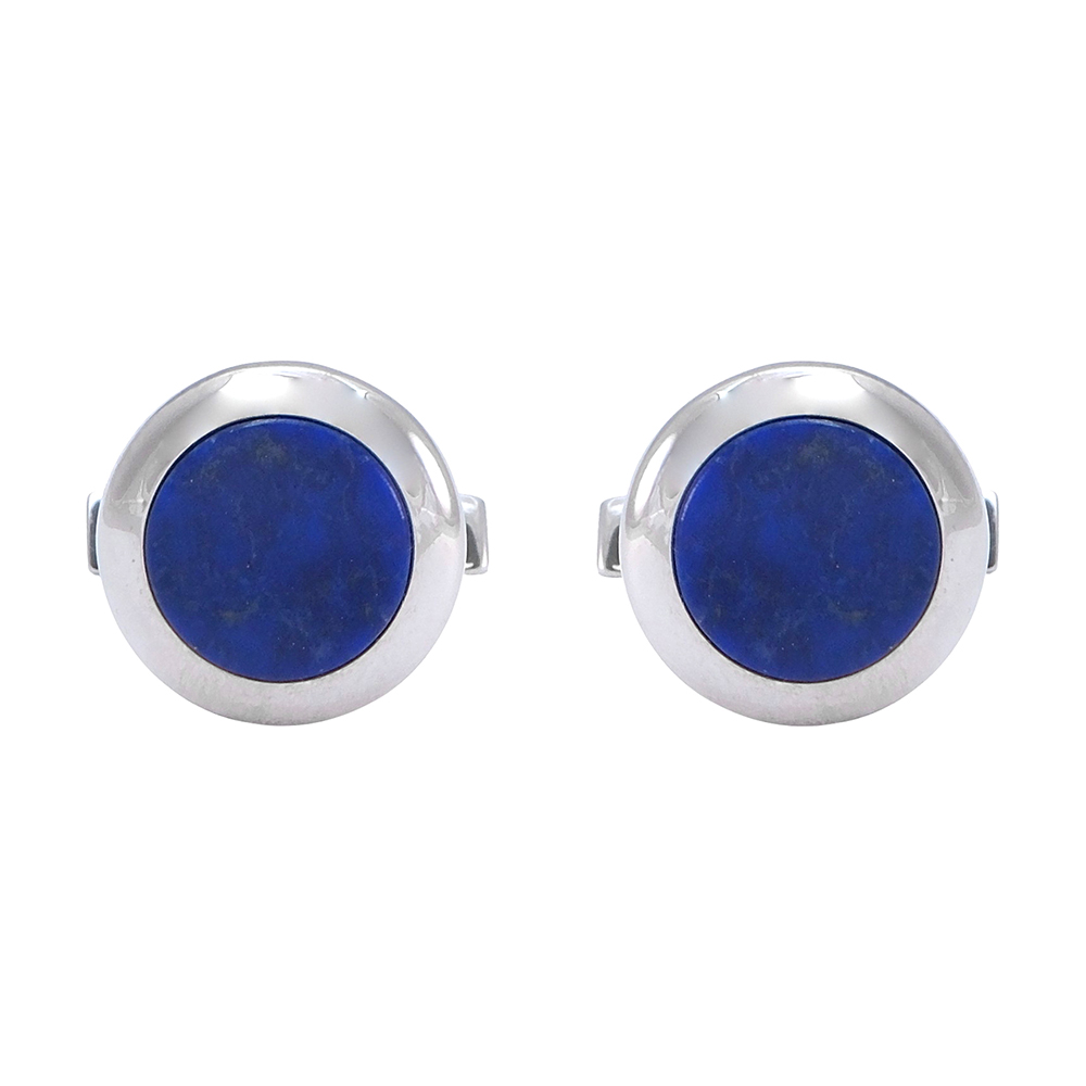 Gemelos de oro blanco y piedra lapislázuli. Diseñados en talla redonda con elegante piedra lapislázuli en intenso azul. Un juego de color muy llamativo y favorecedor que no pasará desapercibido. Un toque chic muy actual, una joya de hoy y para siempre.