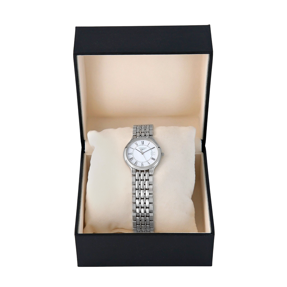 El reloj ha sido cuidadosamente revisado y verificado por nuestros expertos para garantizar su correcto funcionamiento y autenticidad. Su estado de conservación es muy bueno, manteniendo la estética y calidad propias de Longines. Como reloj de segunda mano puede tener ligeros arañazos a pesar de haber recibido un pulido profesional sutil con el objetivo de conservar su máxima integridad original.