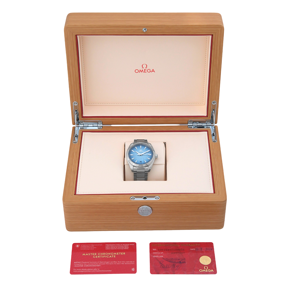 El Omega Seamaster Aquaterra 150 M «Summer Blue» ref.-220.10.41.21.03.005 es un reloj de segunda mano con 2 años de garantía, estuche y documentación, del año 2024.