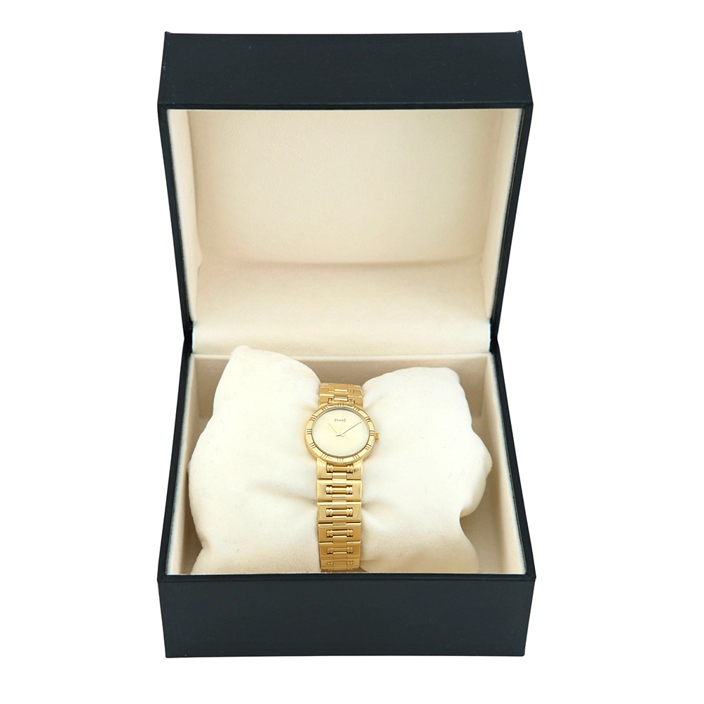 El reloj ha sido cuidadosamente revisado y verificado por nuestros expertos para garantizar su correcto funcionamiento y autenticidad. Su estado de conservación es excelente, manteniendo la estética y calidad propias de Piaget. Como reloj de segunda mano, ha recibido un pulido profesional sutil con el objetivo de conservar su máxima integridad original.