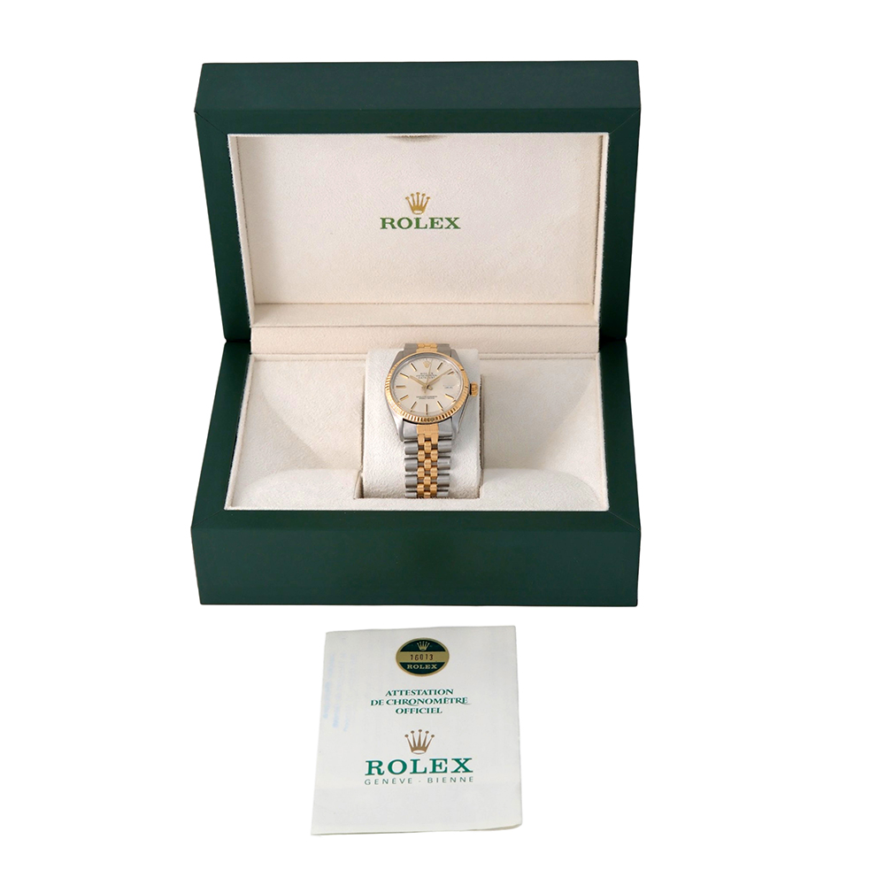 Rolex Oyster Perpetual DateJust 36mm ref.-16013 es una pieza de colección del año 1983 en buen estado general de conservación. Es un reloj original de segunda mano, revisado por nuestros especialistas para que disfrutes con total tranquilidad y con garantía de 2 años. Una reconocible pieza Rolex de elegancia atemporal a un precio de ocasión.