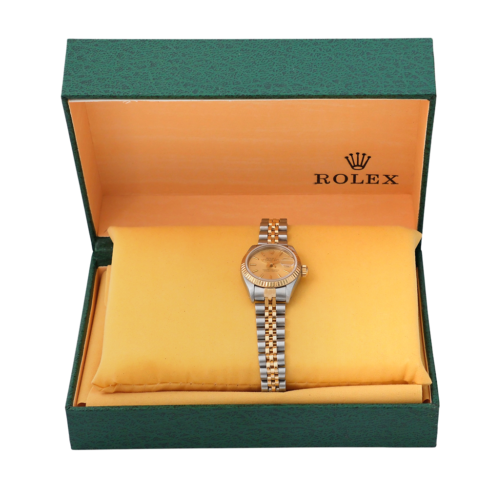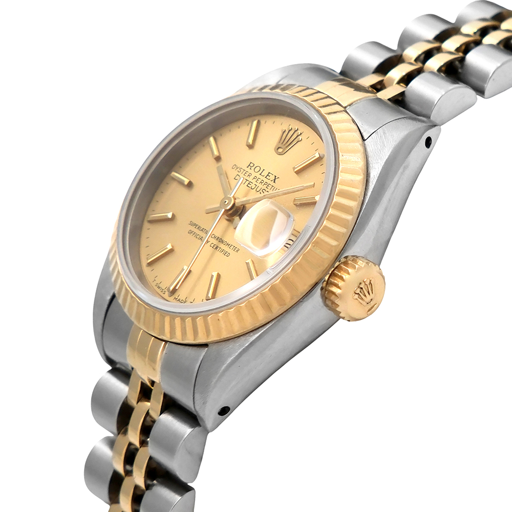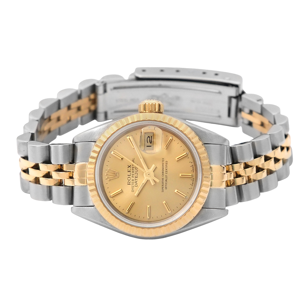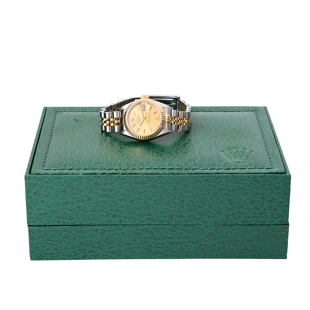 Rolex Oyster Perpetual DateJust lady 26mm ref.-69173 es una pieza de colección de los años 90, en muy buen estado general de conservación. Es un reloj original de segunda mano, revisado por nuestros especialistas para que disfrutes con total tranquilidad y con garantía de 2 años. Una reconocible pieza Rolex de elegancia atemporal.