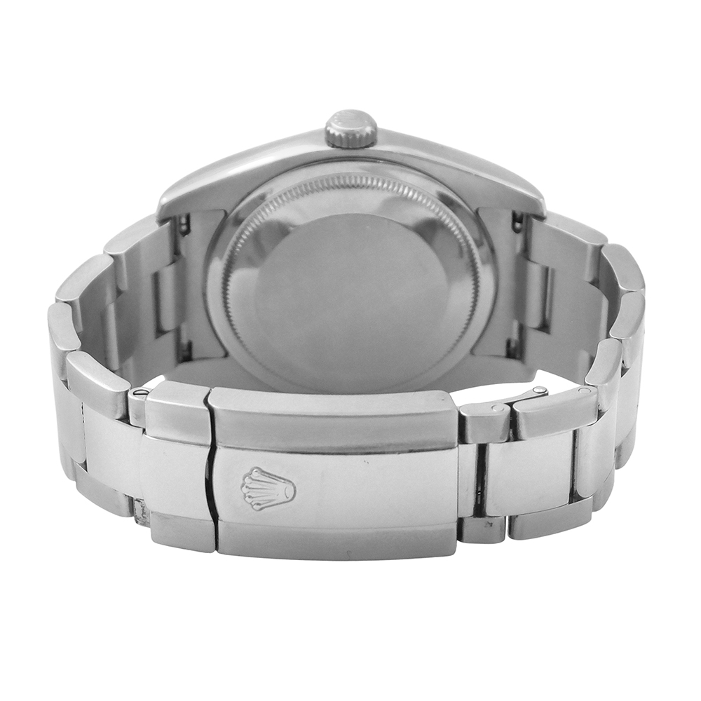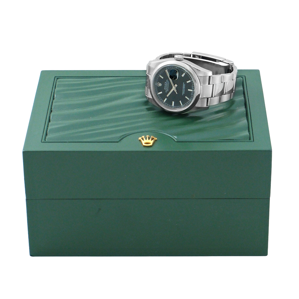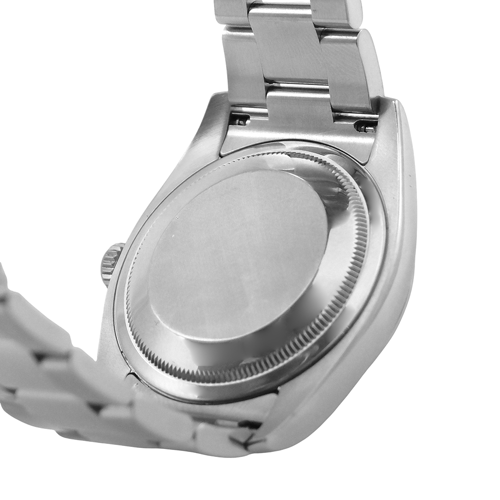 Dotado de movimiento automático calibre 3135 con 48hs de reserva de marcha, esfera negra, calendario, caja de acero de 36mm de diámetro, brazalete oyster de acero, cierre desplegable y hermeticidad hasta 100 metros.